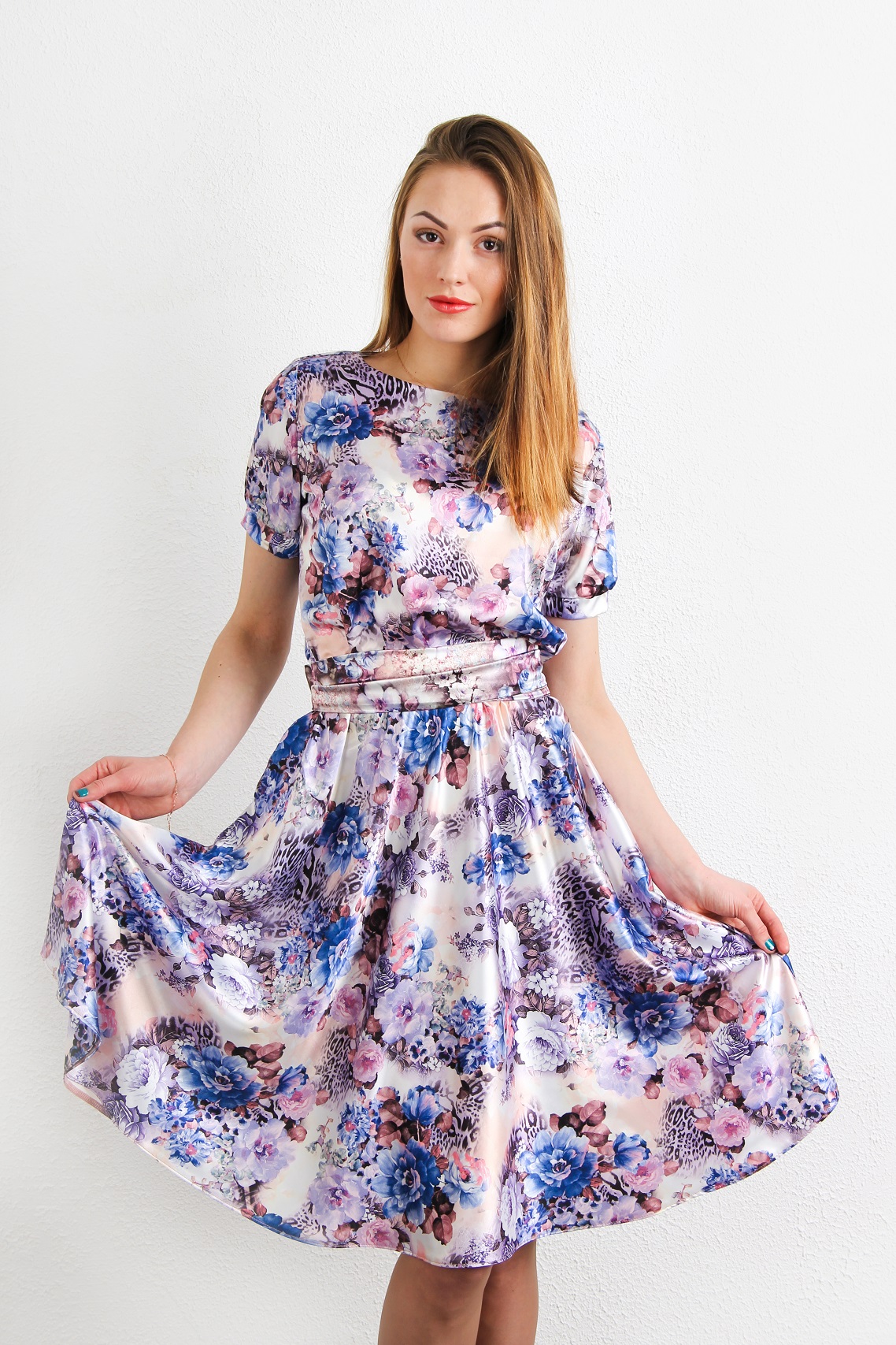 Цвет: цветочный принт на сером электрике