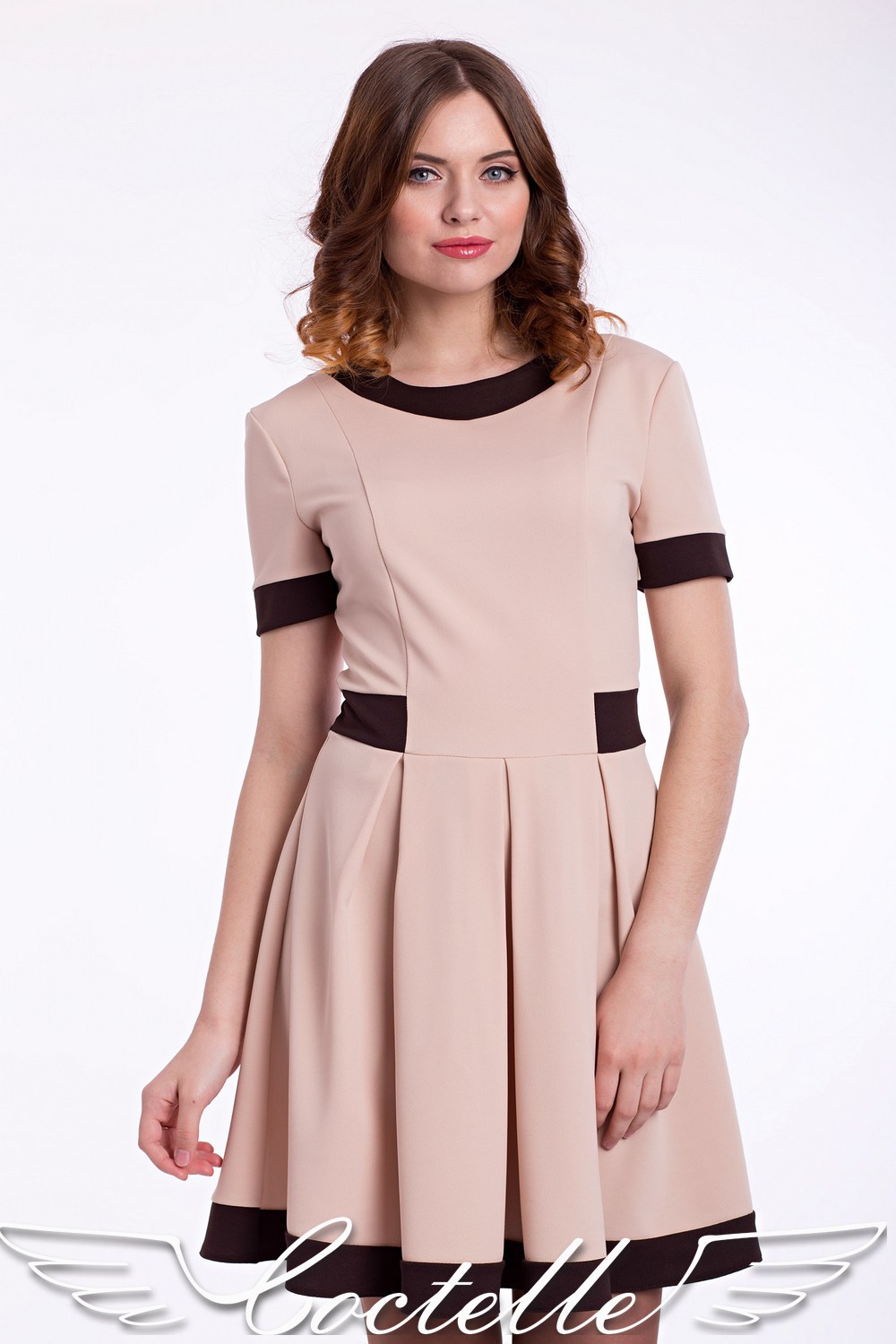 Стильное платье бежегово цвета с элементами